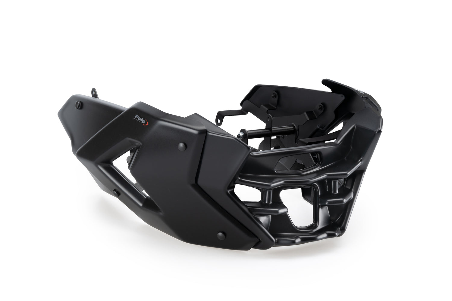 Enhance the bold and aggressive styling of your KTM 1390 Super Duke with the Puig Engine Spoiler, engineered to provide extra protection while integrating seamlessly into the muscular lines of the latest generation Super Duke. Designed in Barcelona using advanced aerodynamic studies, the spoiler strengthens the lower silhouette of the bike and adds effective shielding against stones, debris and road dirt.