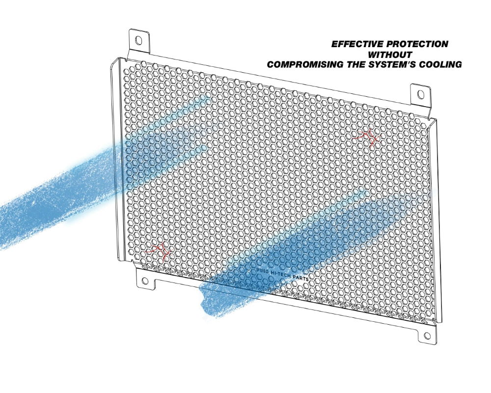 Crafted from high-strength aluminium with a textured black finish, it adds durability without compromising airflow. The hexagonal mesh ensures maximum cooling efficiency while offering a sleek, factory-fit appearance.