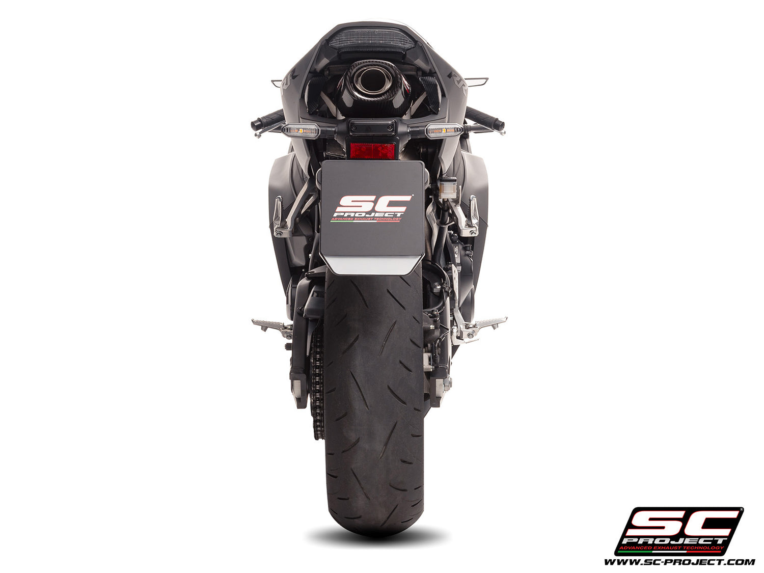 The SC-RR produces a deeper and more aggressive sound from the CBR600RR’s 600 cc four-cylinder engine, while remaining fully compliant with Euro 5+ regulations. Handcrafted TIG welds, a carbon fibre end cap with a sharp-edged debossed SC-Project logo, and premium finishes make this silencer as visually striking as it is functional.
