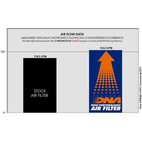 To make the comparison fair, DNA tests each filter back-to-back with the original equipment (OEM) filter from the bike, on the same day and under the same conditions. The results are published so you can clearly see the difference in airflow between the standard filter and the DNA upgrade — and know exactly what to expect when you fit one.