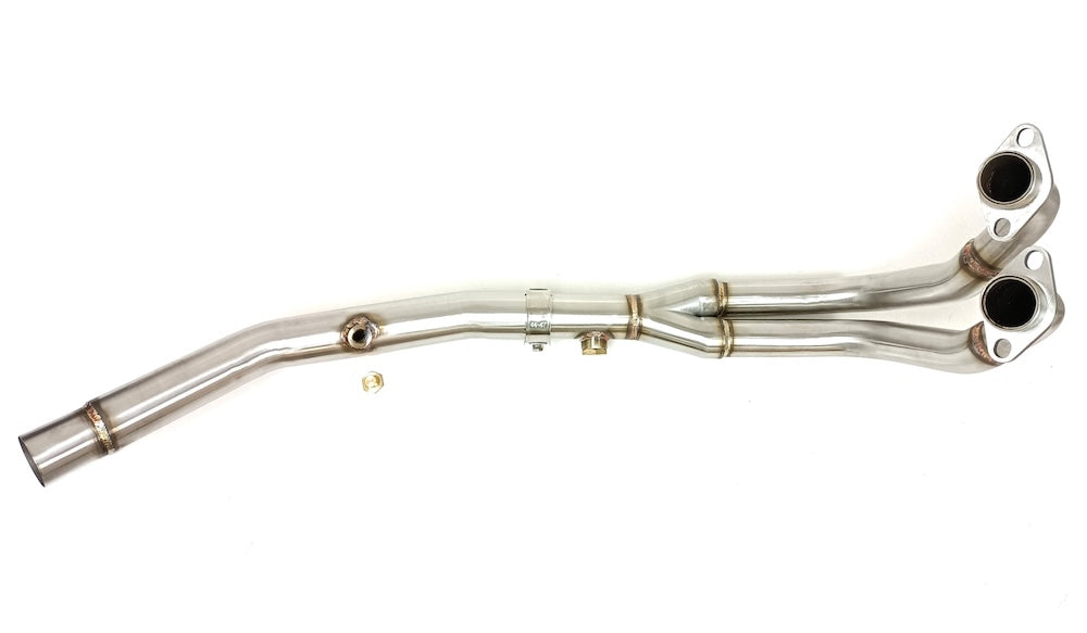 Manufactured from AISI304 stainless steel with a satin matt polish, it replaces the restrictive OEM catalyst to improve exhaust flow, sharpen throttle response, and add a more purposeful sound.
