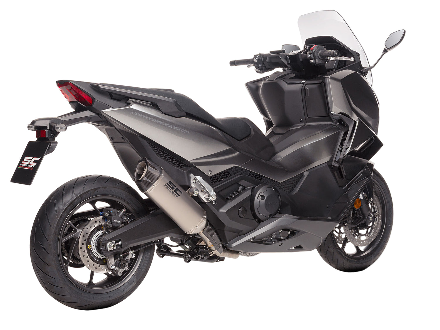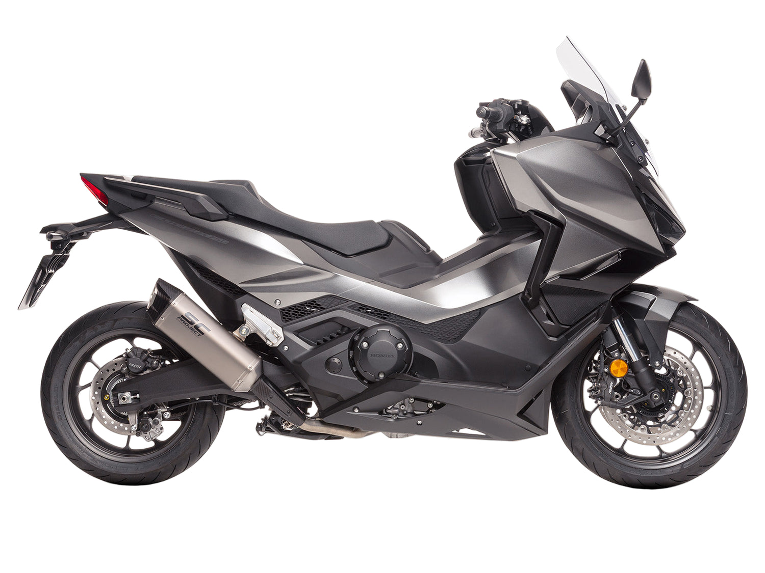 Featuring an ultralight titanium body, sharp-edged carbon fibre end cap, and asymmetrical outlet, it enhances the modern urban styling of Honda’s flagship scooter while delivering a sport-inspired look.
